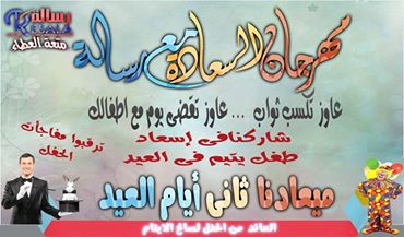مفأجاة رسالة للأعمال الخيرية .. حفل خيرى كبير بعنوان "مهرجان السعادة" ثانى أيام عيد الفطر المبارك بمركز شباب ههيا (الساحة الشعبية) .